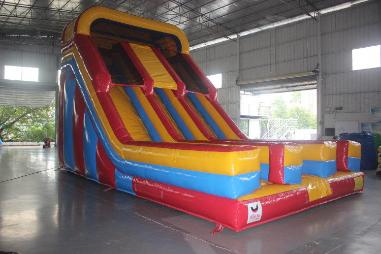A double lane slide to get high numbers of riders through. it is 9m long x 5m wide and 6m high.